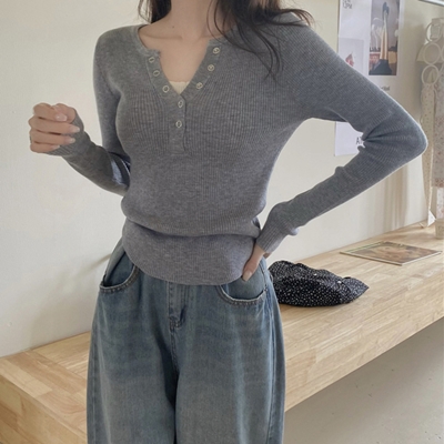 gc.[DE752]리리버튼골지긴팔티셔츠